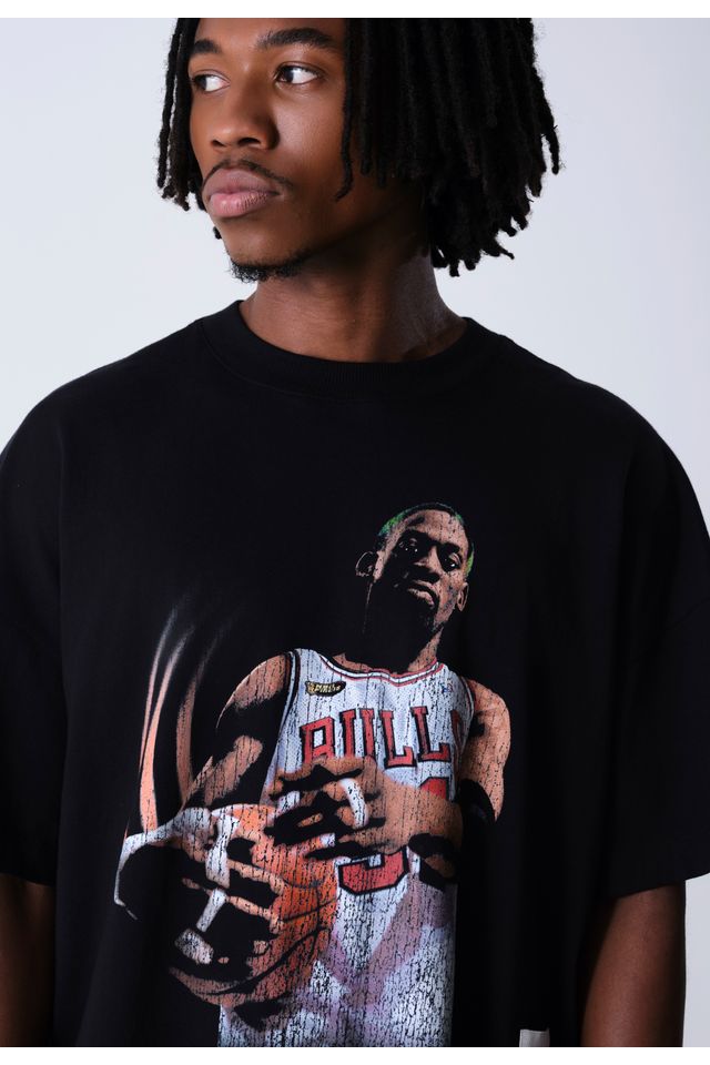 Camiseta Mitchell & Ness Collab NBA x The Saint Wide Boxy Dennis Rodman Preta