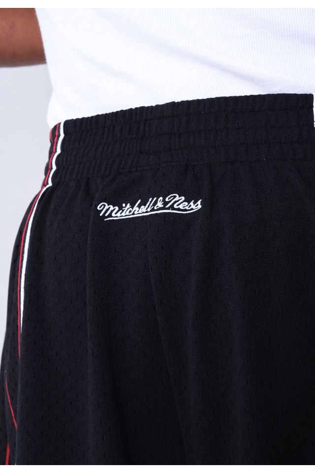 O Shorts Swingman Chicago Bulls Mitchell & Ness x NBA, também em jersey, acompanha perfeitamente o drop. Com shape amplo, apresenta listras vermelhas nas laterais e detalhes brancos nas extremidades para realce do contraste. Os selos aplicados na barra reforçam a colaboração e completam o conjunto com fidelidade estética.